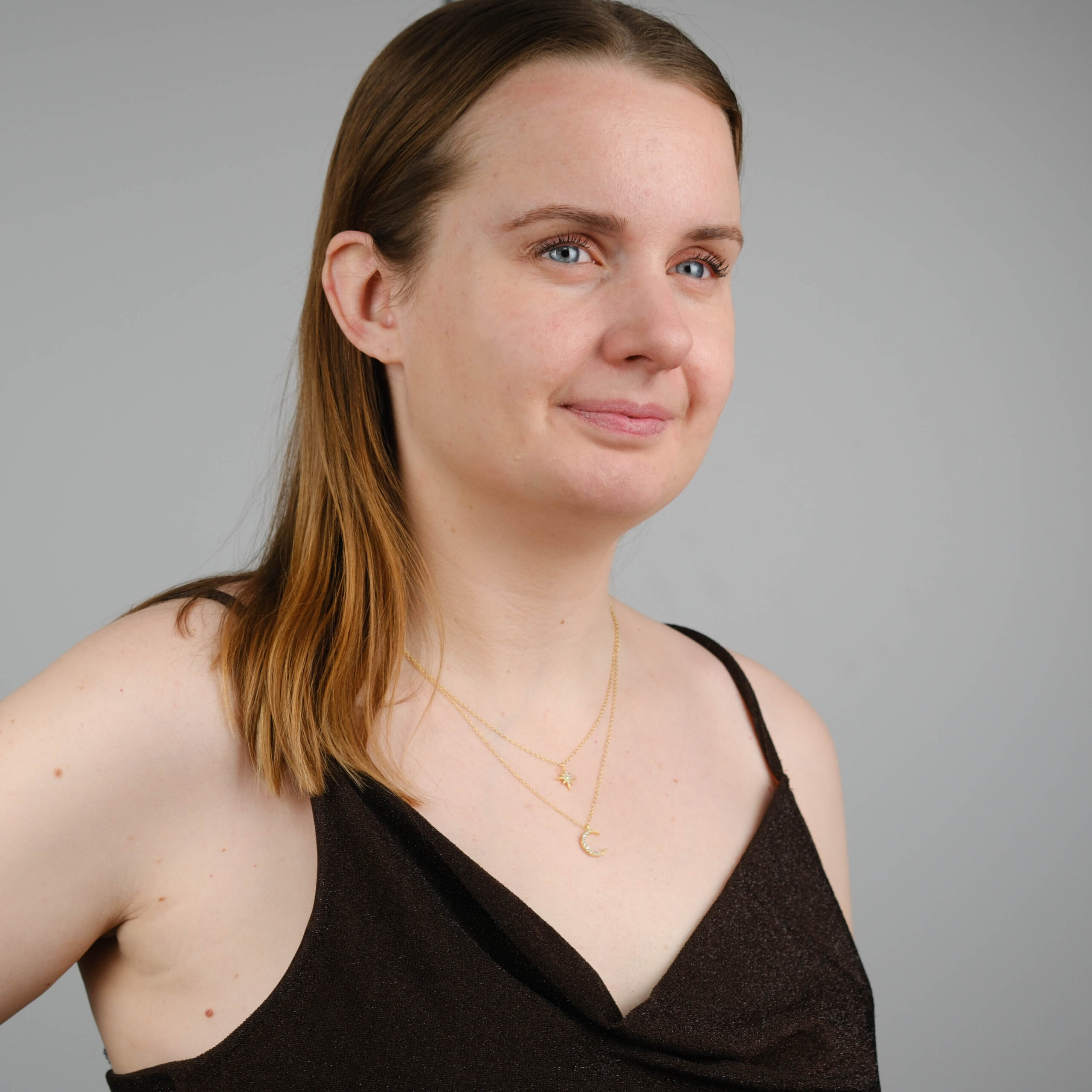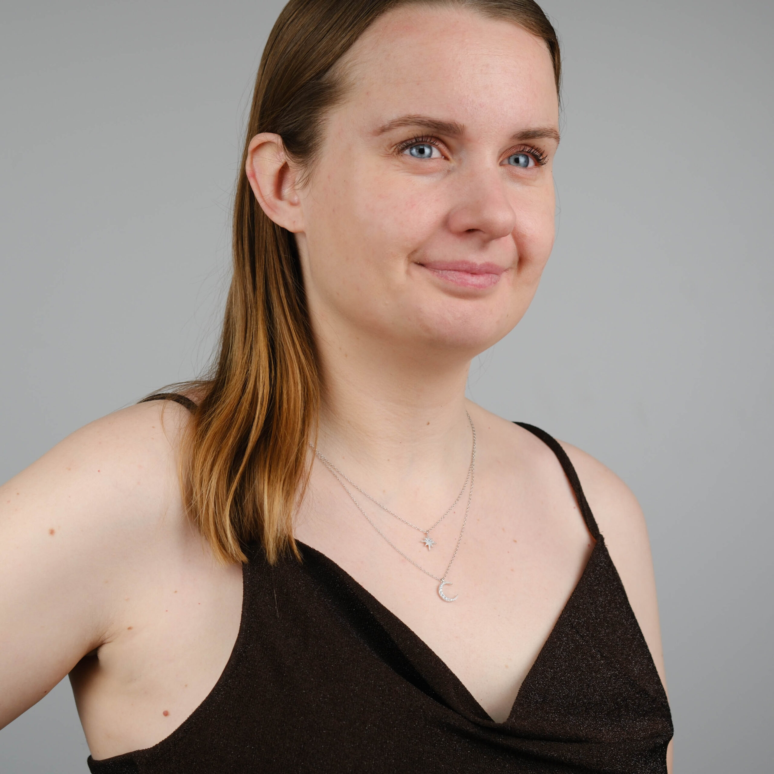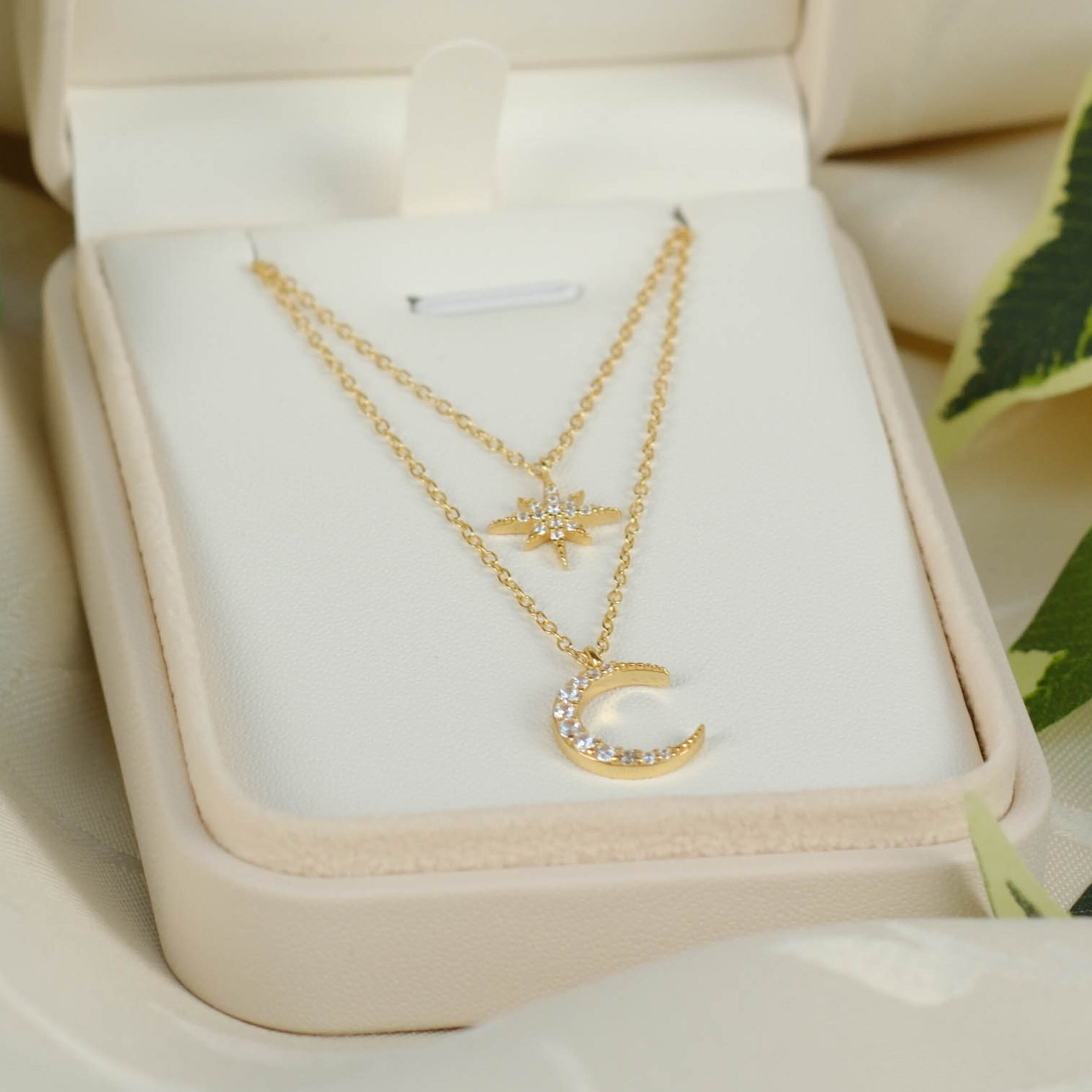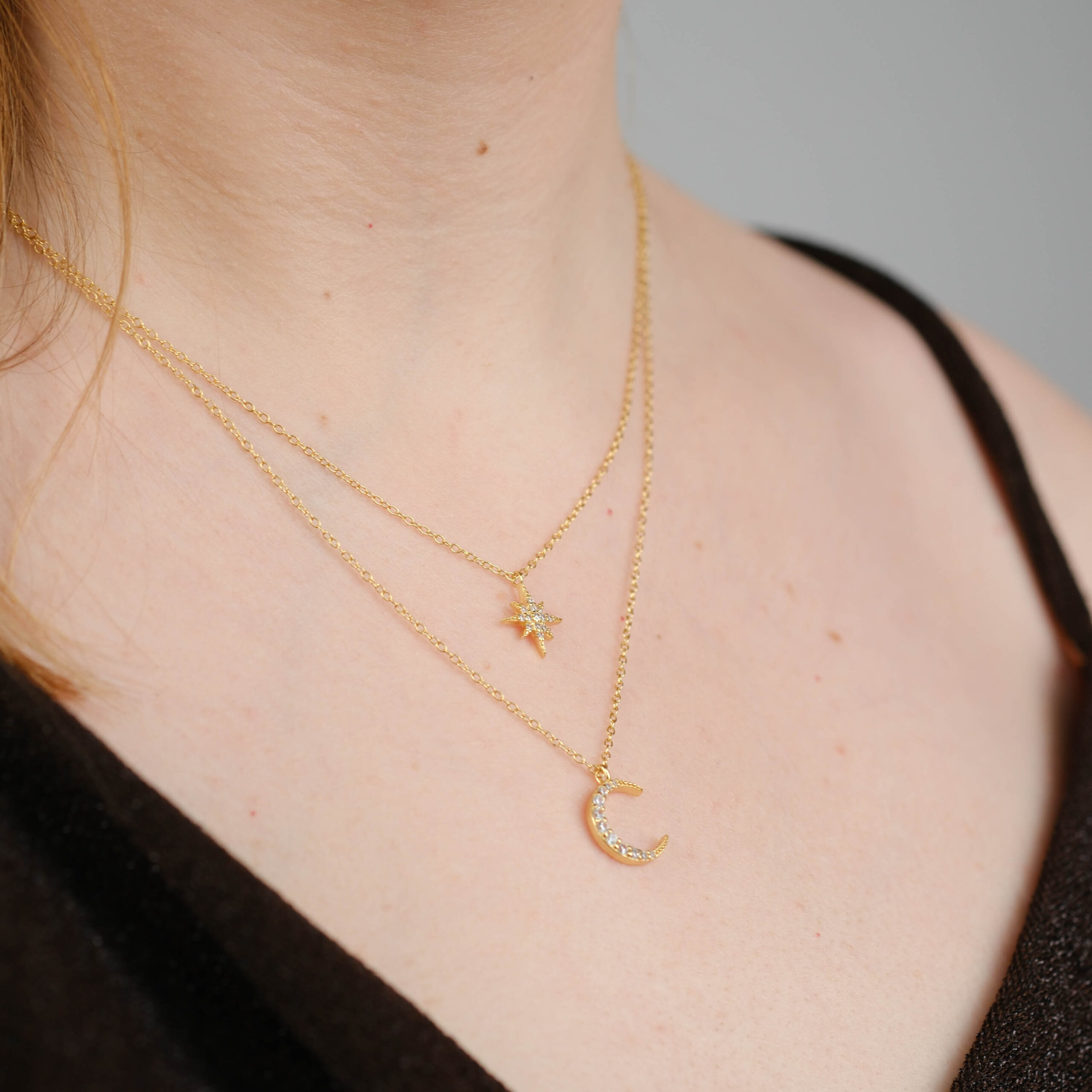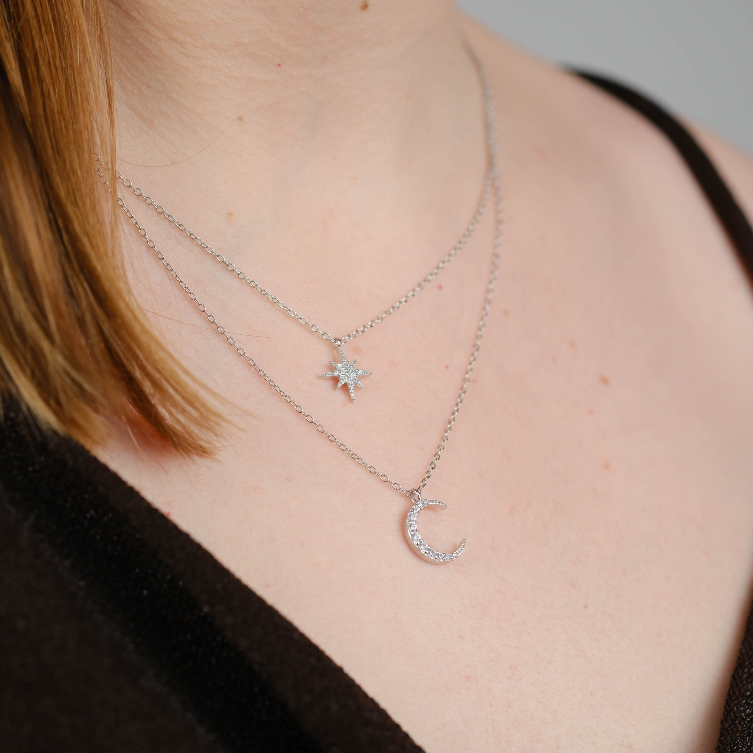 Denne sølv halskæde med stjerne og måne har et feminint og sofistikeret udtryk og er et tidløst smykke, der passer perfekt til både hverdag og særlige lejligheder.