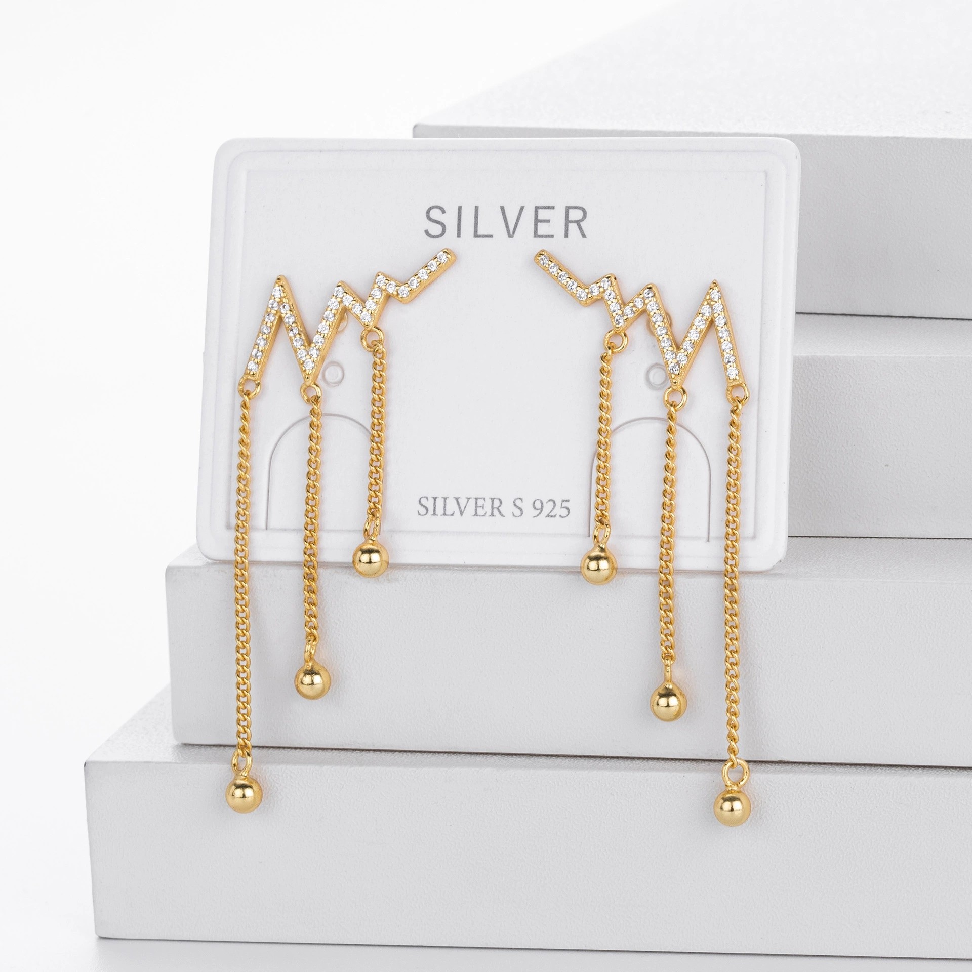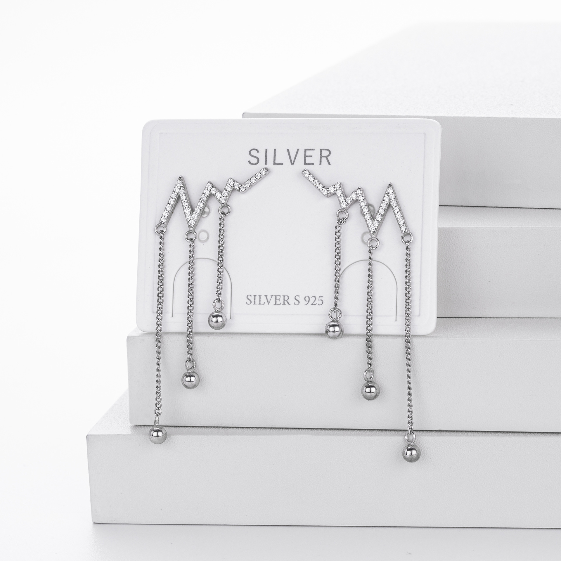 Pulse Drop er moderne og elegante øreringe i 925 sterlingsølv, designet med et grafisk zigzag-motiv indfattet med funklende zirkonia-sten og lange, fine kæder med små kugledetaljer. Designet er inspireret af energi og bevægelse og giver et markant, men feminint udtryk.