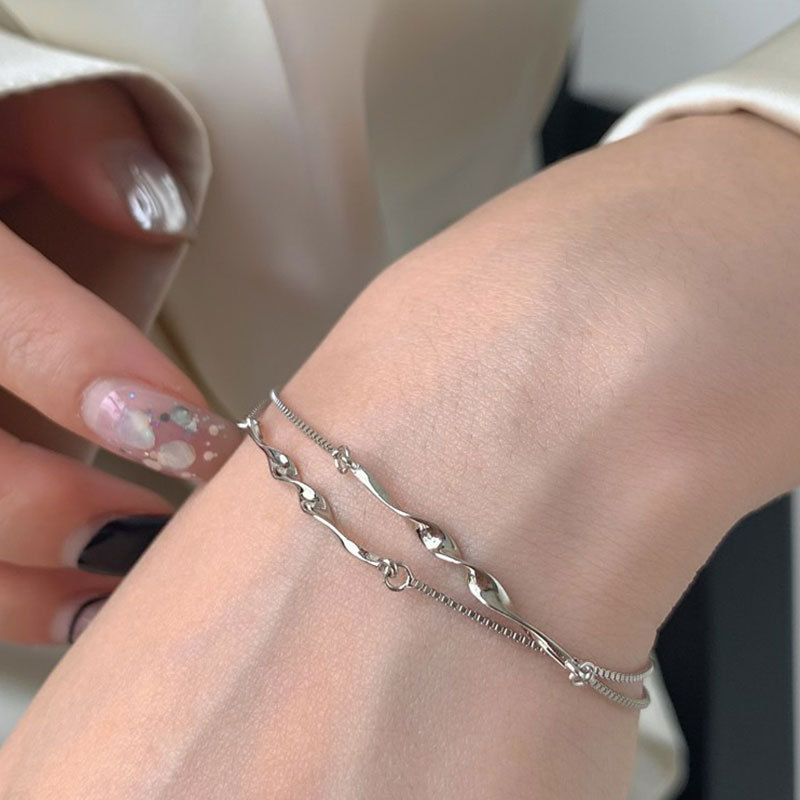 Serena Flow er et elegant og moderne armbånd i 925 sterlingsølv, designet med bløde, bølgende linjer og et fint dobbeltkæde-look, der giver et let og sofistikeret udtryk. De organiske former symboliserer bevægelse og balance og gør armbåndet både tidløst og feminint.